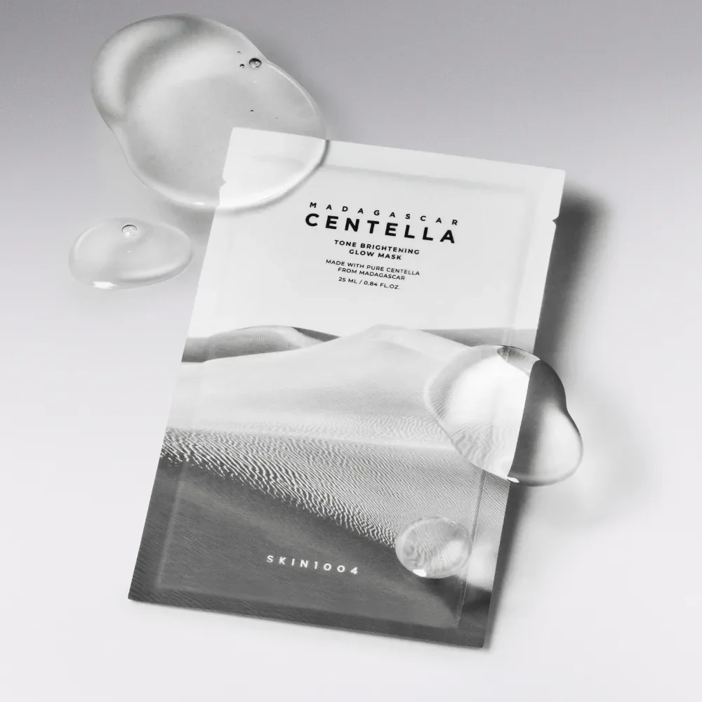 SKIN1004's Madagascar Centella Tone Brightening Glow Mask is a radiance-boosting sheet mask designed to hydrate and brighten dullness.